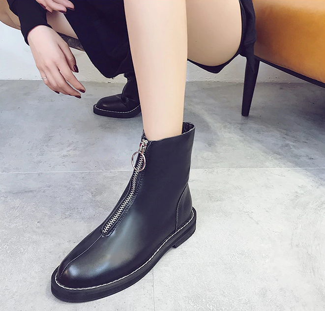 The zip is located at the front and perfectly complements the overall look of the ankle boots.