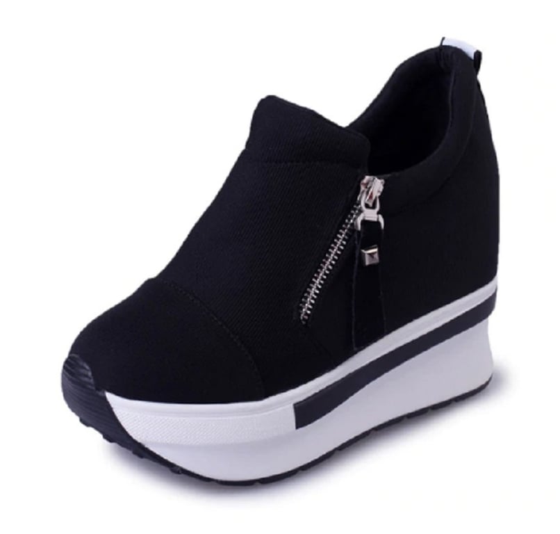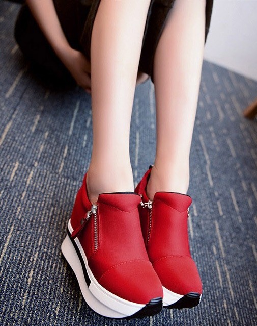 Every woman will fall in love with these platform ankle boots. The trainers fasten with a zip.