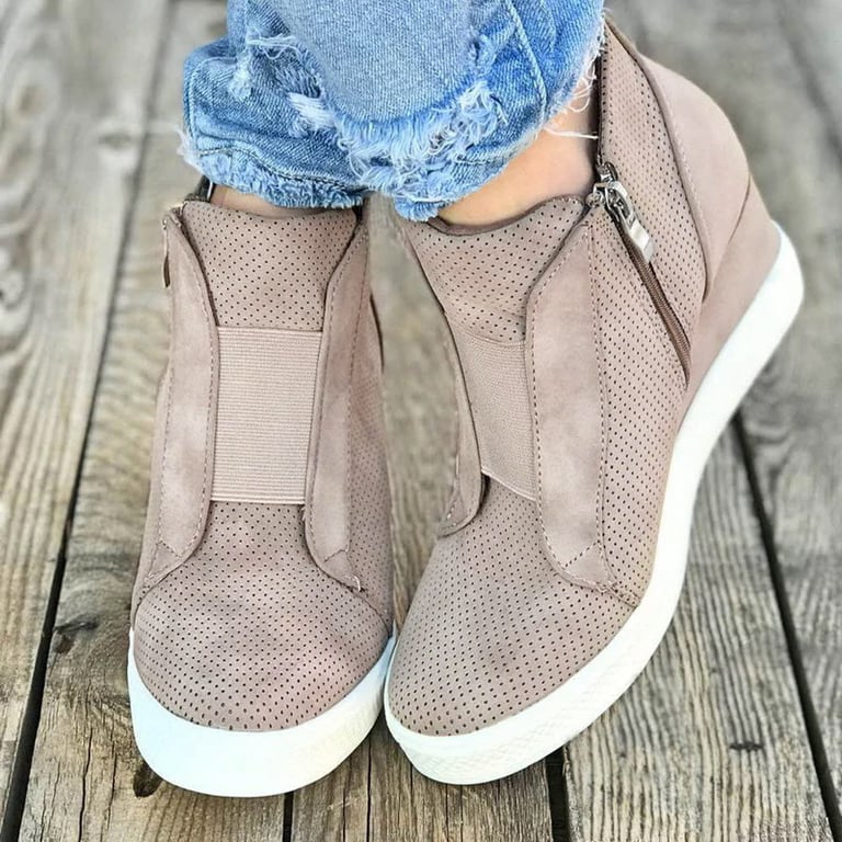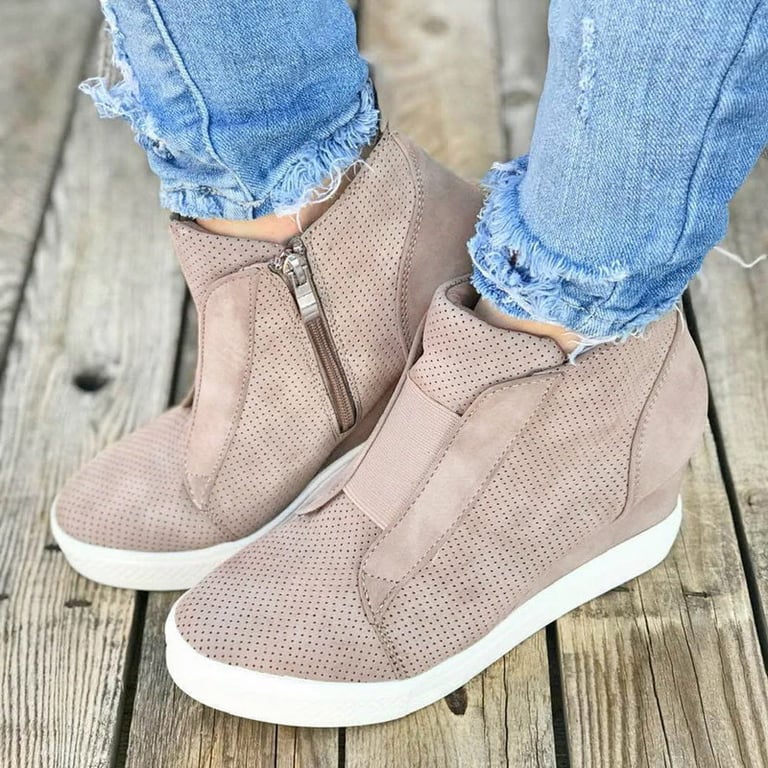 Women's ankle boots on a high platform. The boots feature a rubber sole and a zip fastening on the inner side. Made of synthetic leather. Available in multiple colour options.