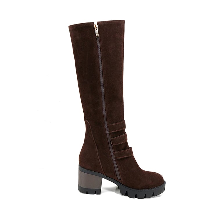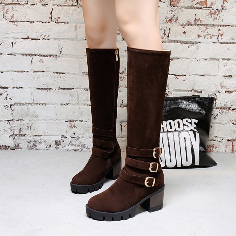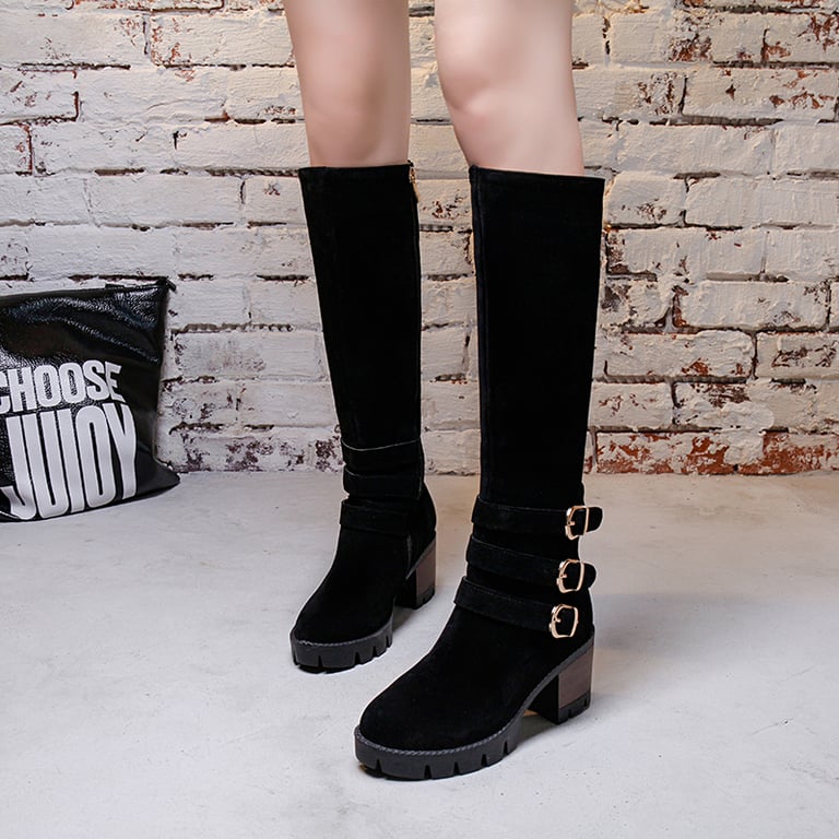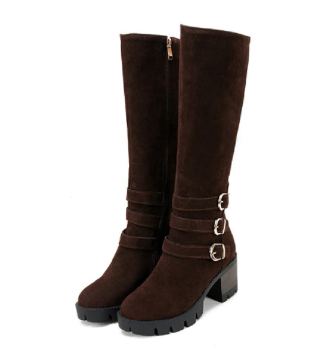 Put on these beautiful boots adorned with three buckles. The boots are made from premium material.