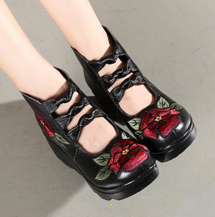 Women's ankle boots with flowers