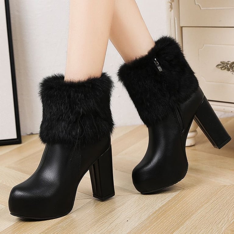 Women's ankle boots with plush trim on a block heel Alisa