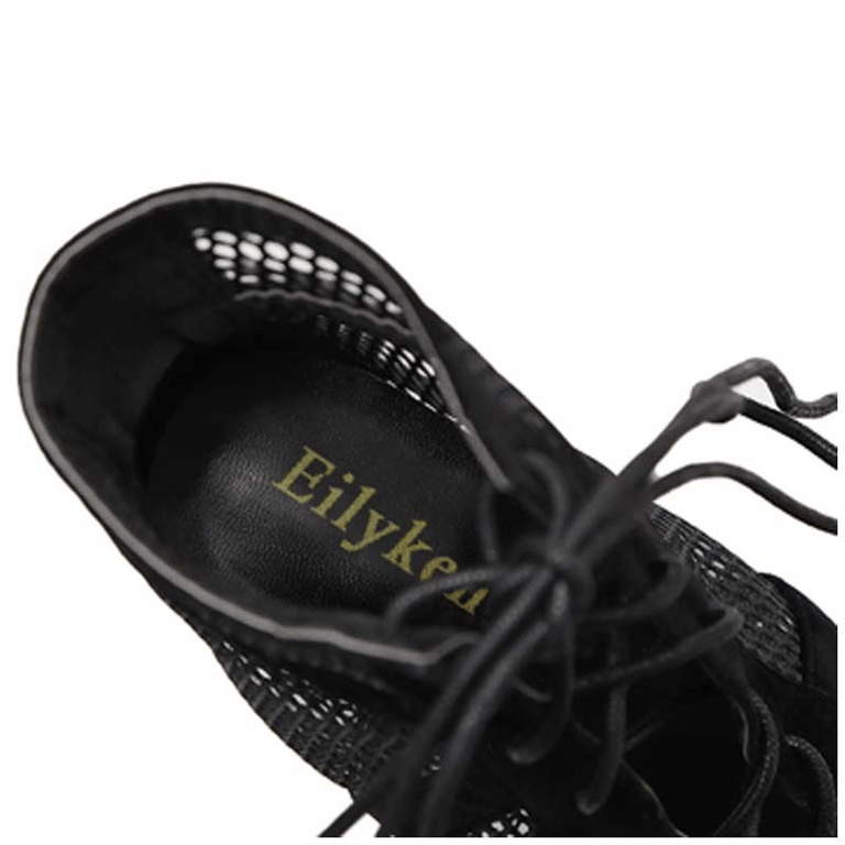 Women's ankle tie-up court shoes with open toe