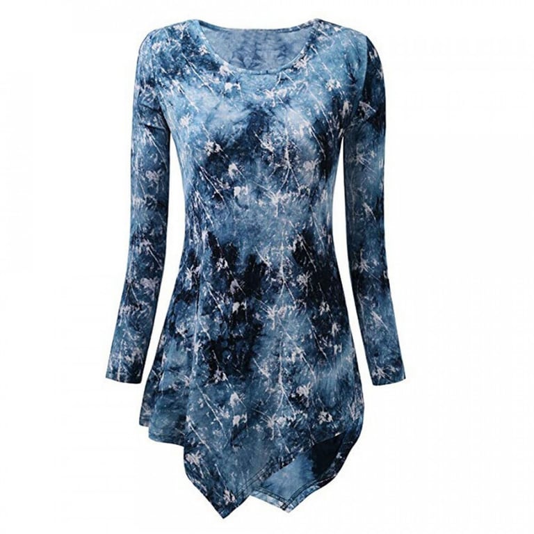 Women's blouse with long sleeves and a round neckline. Asymmetrical cut, slightly fitted at the waist. Colourful abstract pattern. Available in two variants.