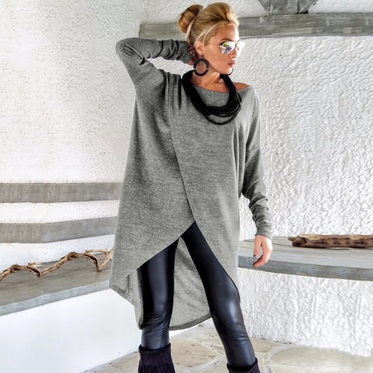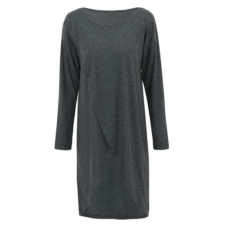 Women's autumn dress with an asymmetrical cut.