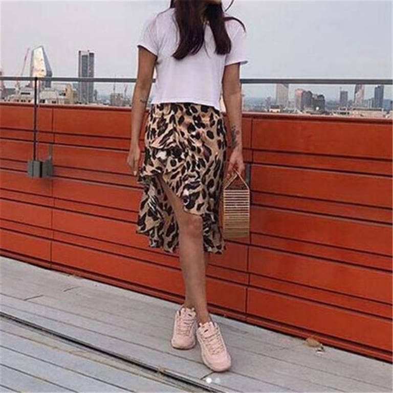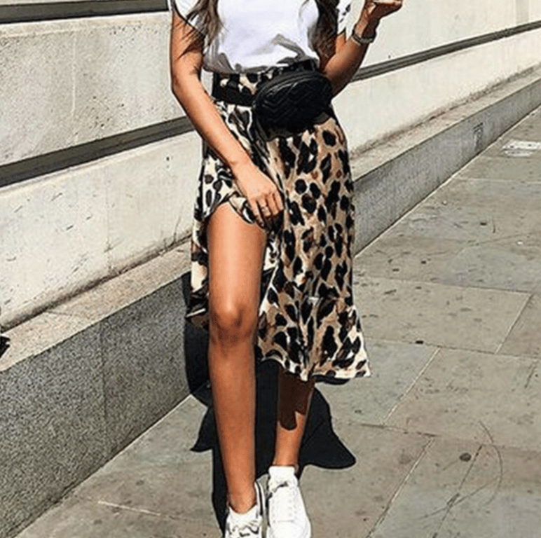 Women's asymmetrical skirt with leopard print