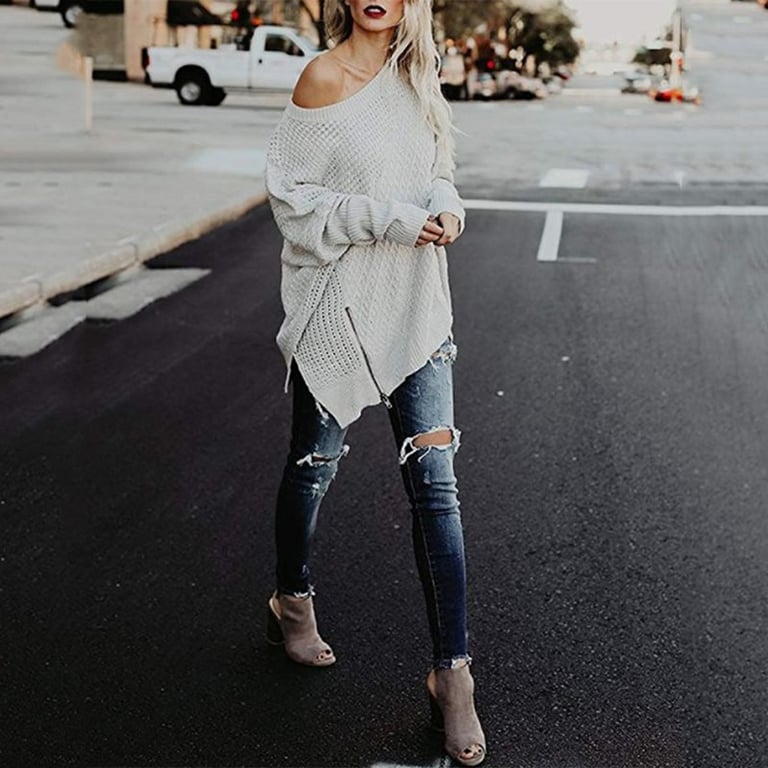 Women's asymmetrical sweater Monika – light grey