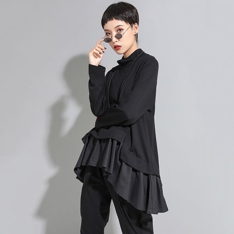 Women's asymmetrical sweatshirt with ruffles