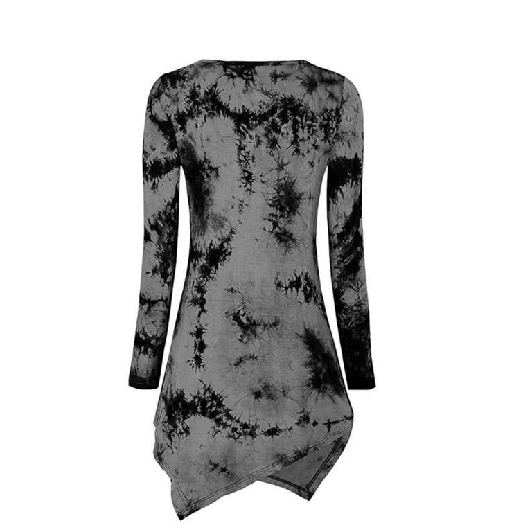 Women's long-sleeve t-shirt with a round neckline. Asymmetrical extended cut. Print with an abstract pattern. Available in two colour options.