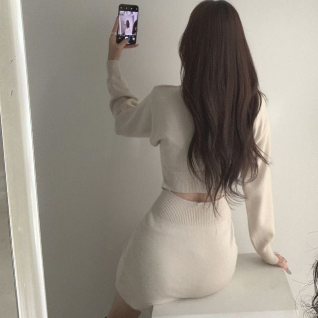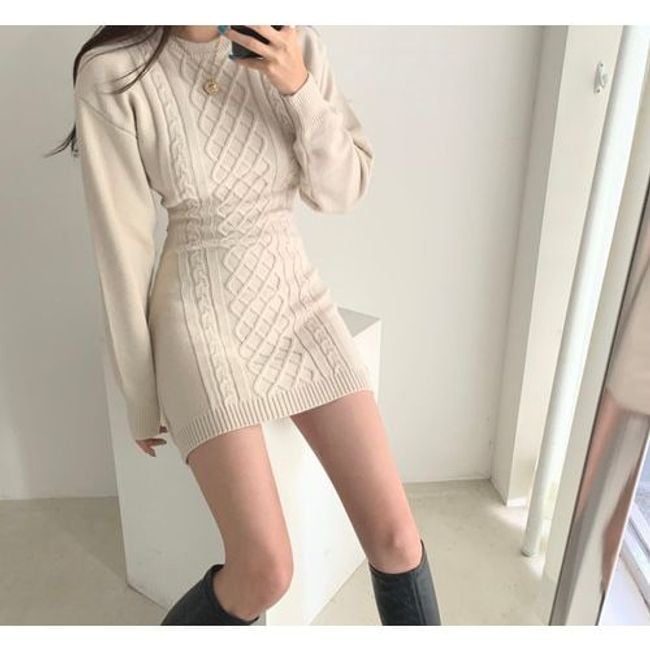 Women's autumn knitted dress with long sleeves Noira - white