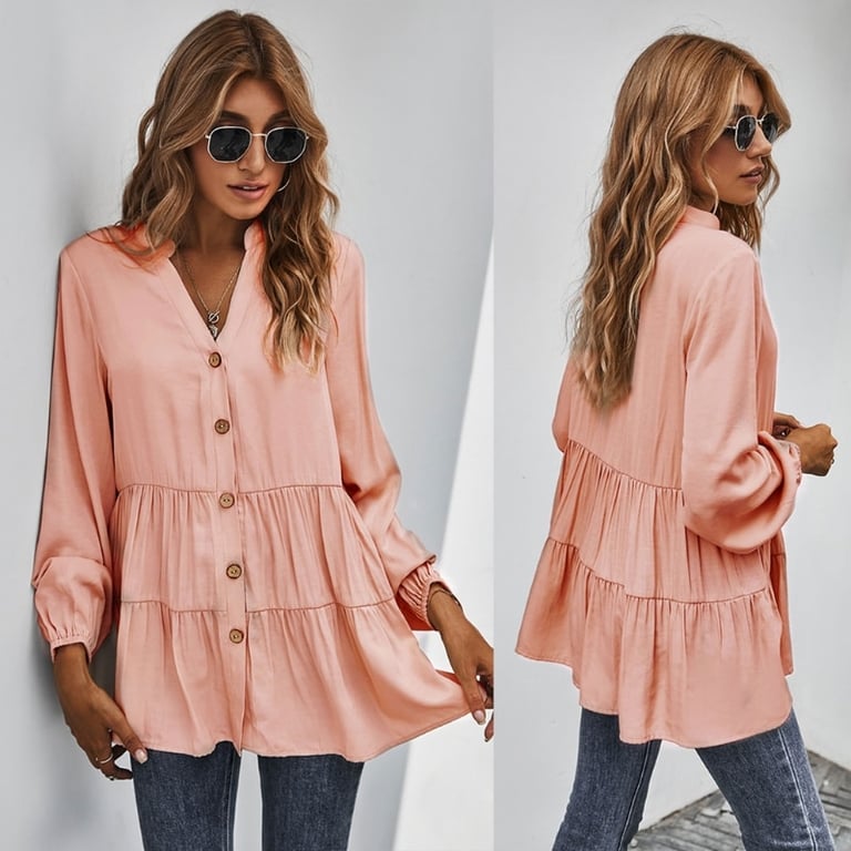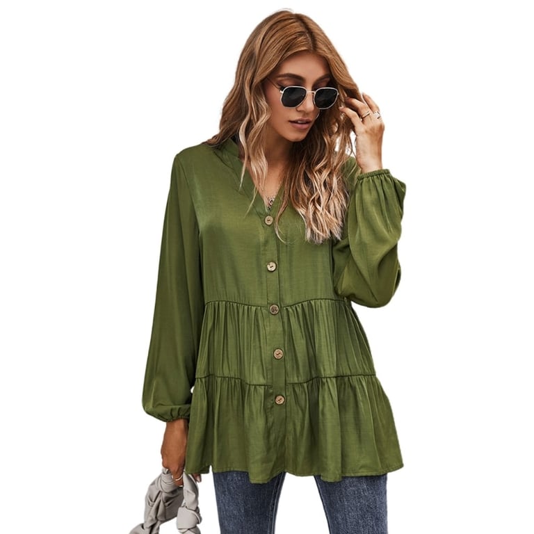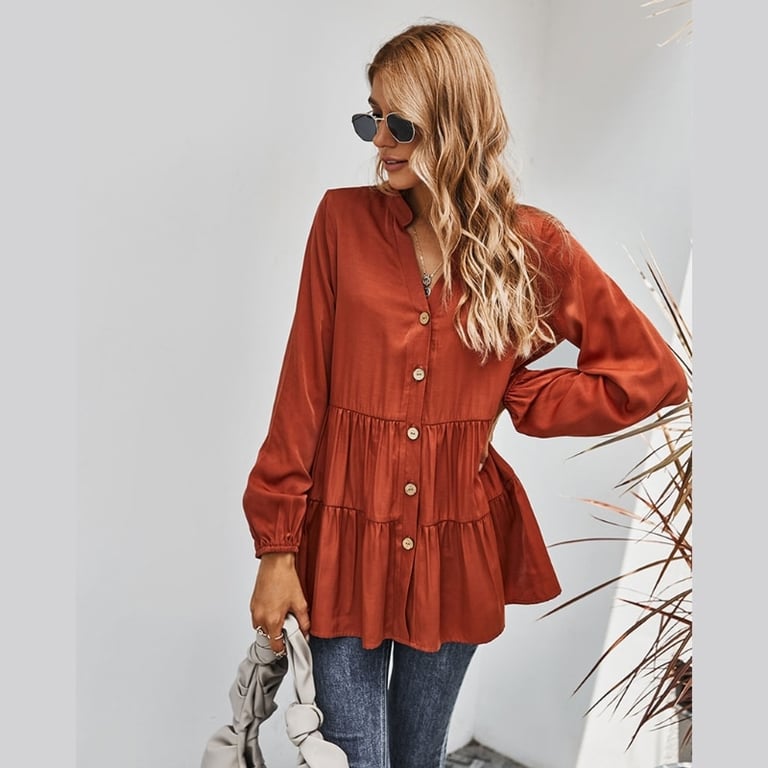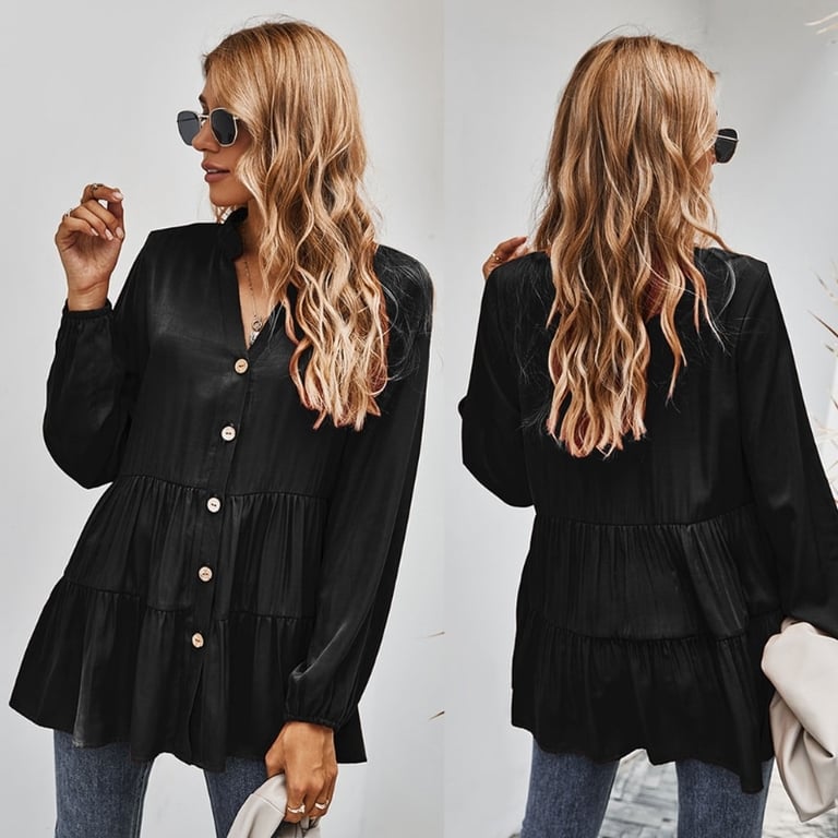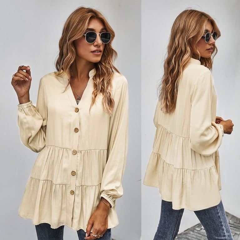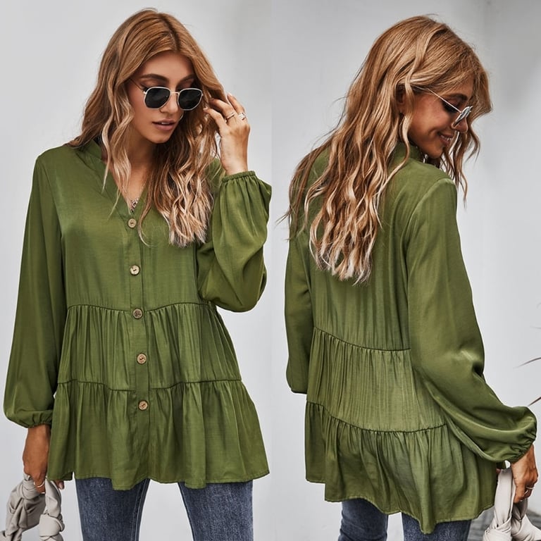 • Tags: women's shirt, tunic, longer, loose, buttons, summer, autumn, neckline, ruffles
