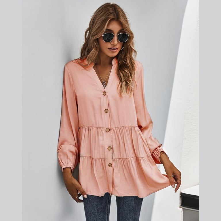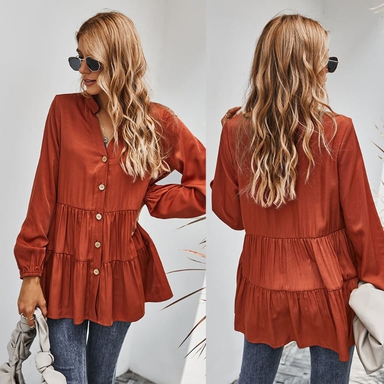 Women's Autumn Loose Long Sleeve Shirt with Buttons