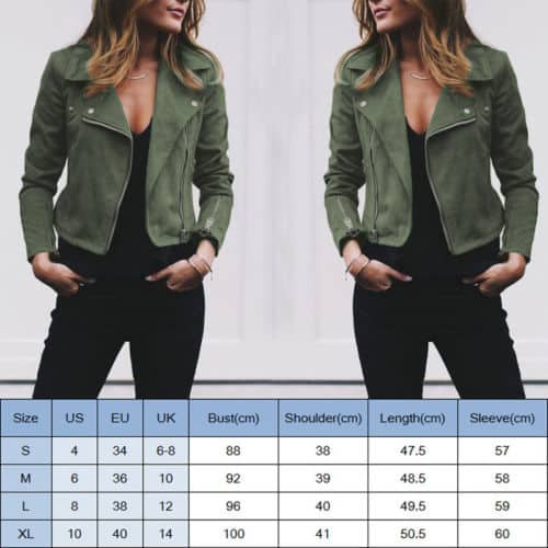 Size chart in centimetres: