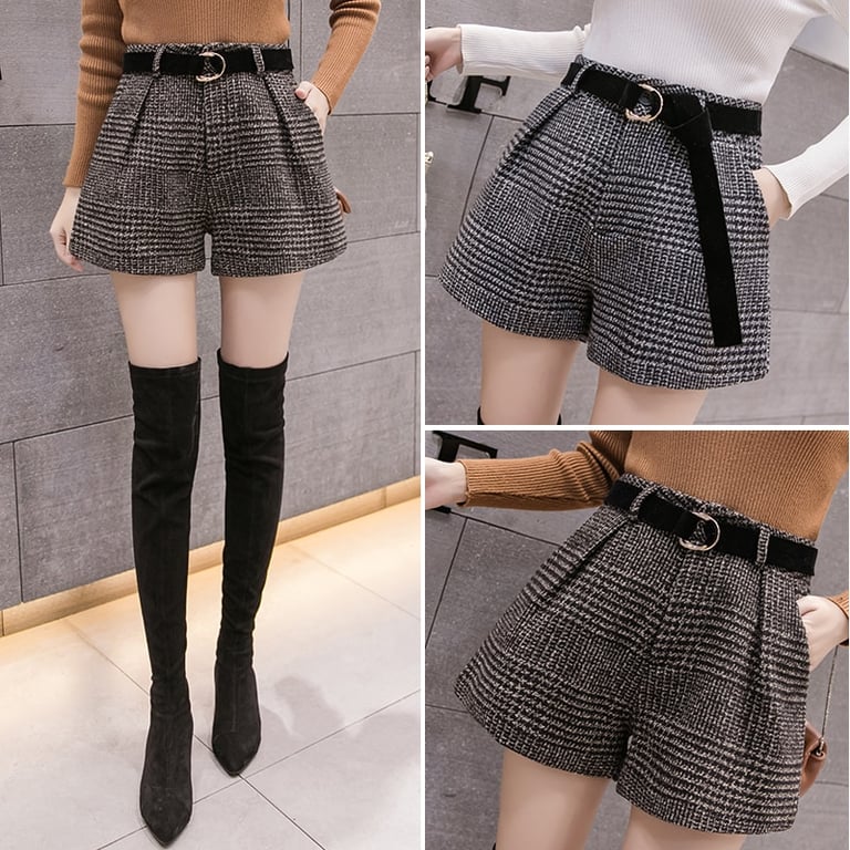 Women's Autumn Wool High-Waisted Shorts