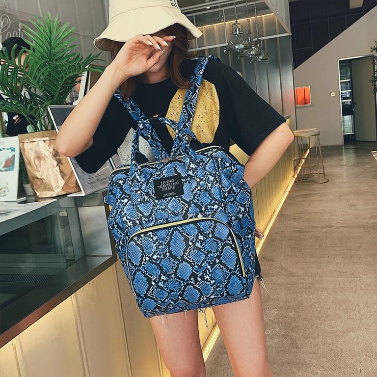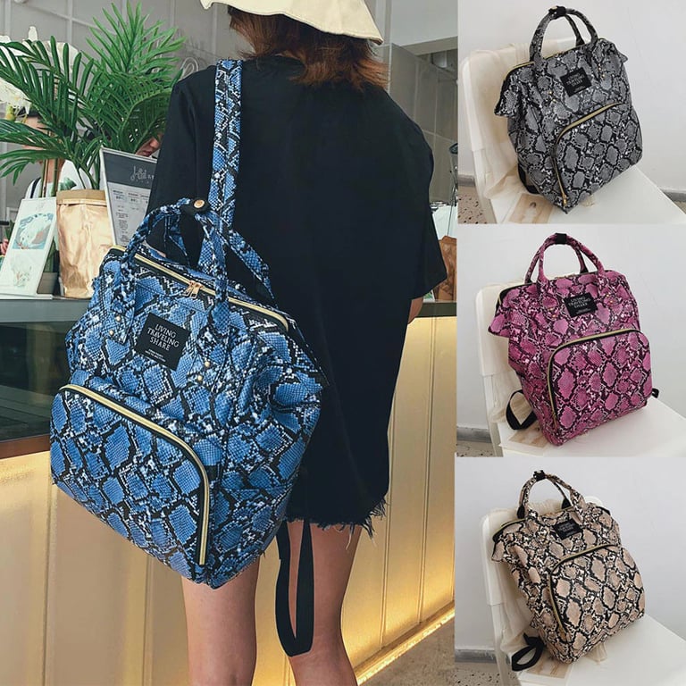 Stylish backpack in a classic snake skin pattern in various colours.