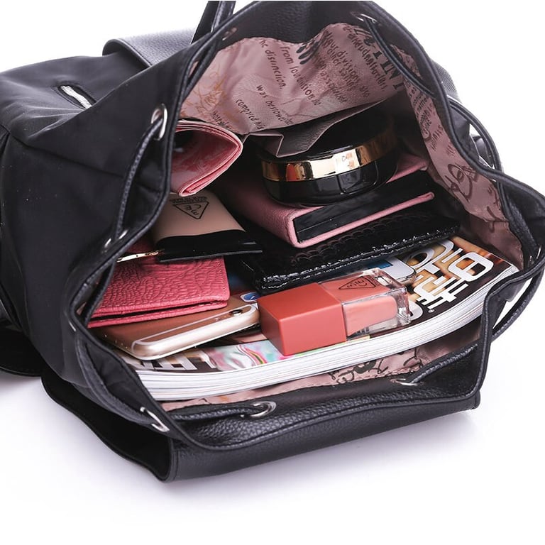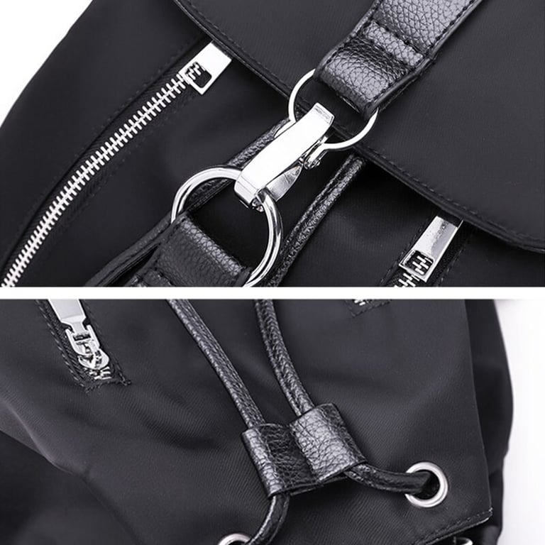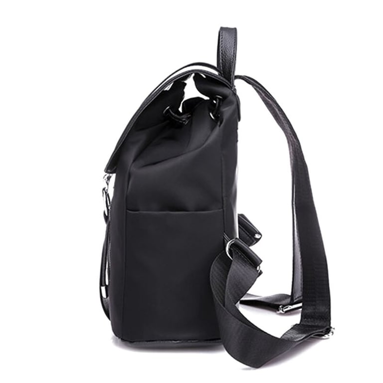 Women's backpack with adjustable straps and a handle. Large pocket with buckle fastening. Two small zip pockets.