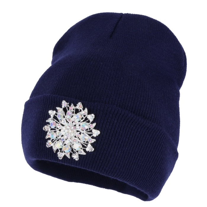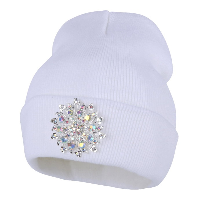 Women's beanie hat with a brooch