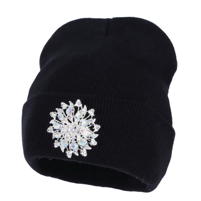 Women's Beanie Hat with Brooch