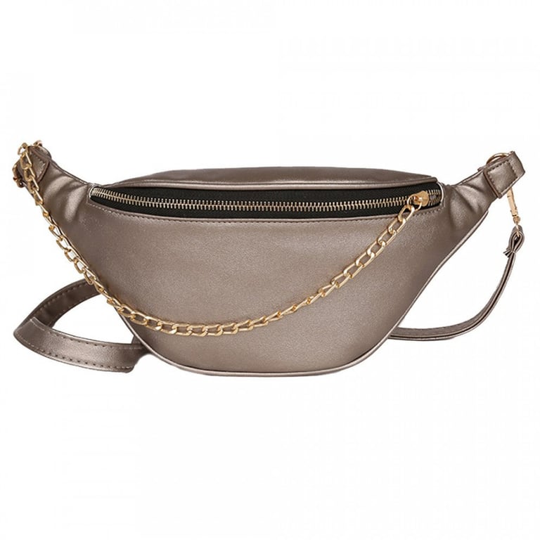 Women's fashion belt bag with a strap. Can be worn around the waist or over the shoulder. Front pocket with a zip. Gold chain. Available in several colours.