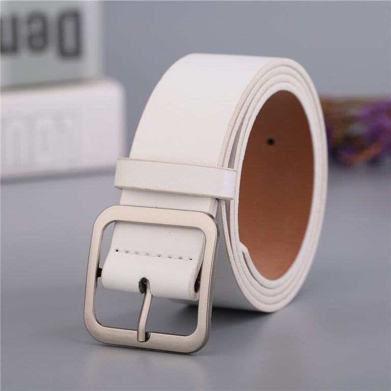 Women's belt with a silver buckle. Artificial leather. One size fits all. The length of the belt is 100 cm, width 3.5 cm. Available in multiple colour options.