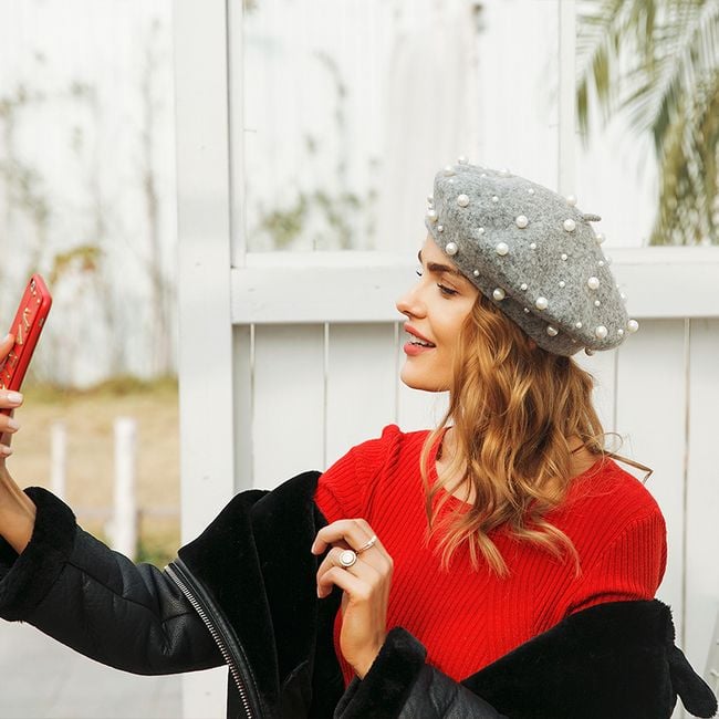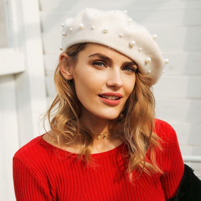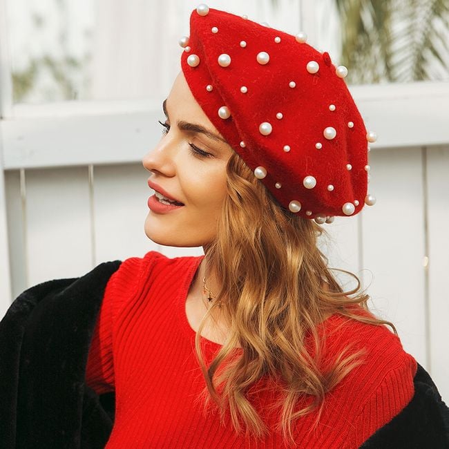 Stylish women's beret enhanced with artificial pearls. Available in 4 colour options