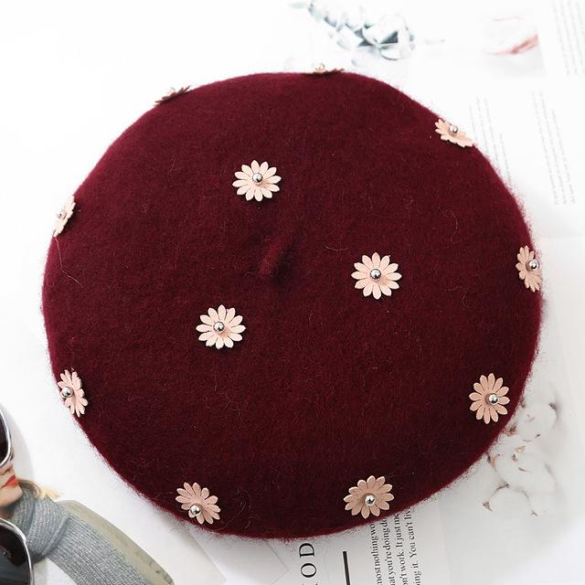 Beautiful and elegant women's beret with sewn flowers. We offer it in various beautiful colours, so everyone can choose the right one! A truly original piece.