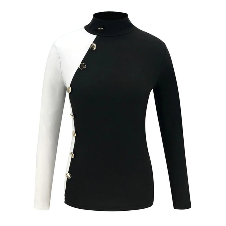 Women's Black and White Roll Neck with Buttons