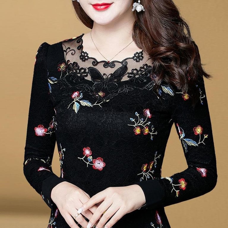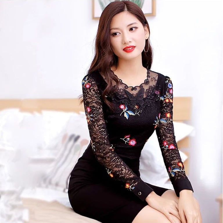 Women's black blouse with lace