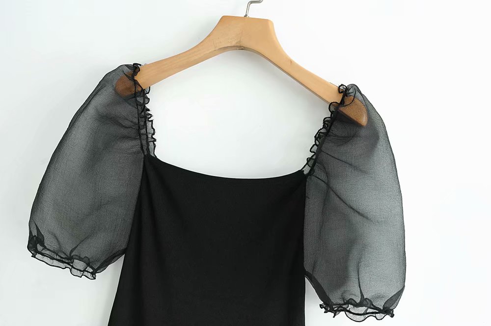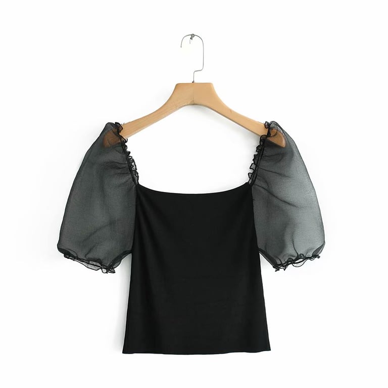 Women's black blouse with sheer sleeves
