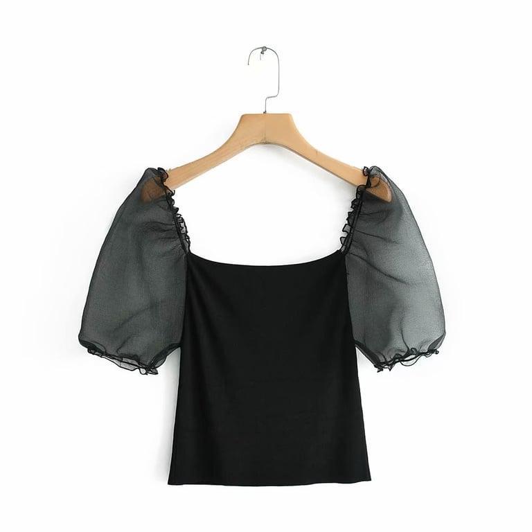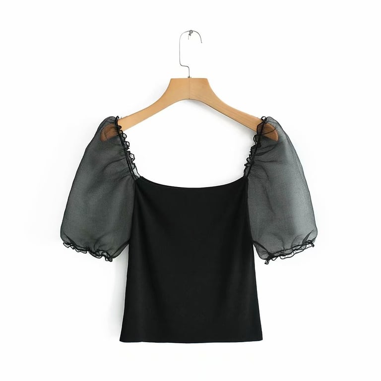 Women's Black Blouse with Sheer Sleeves