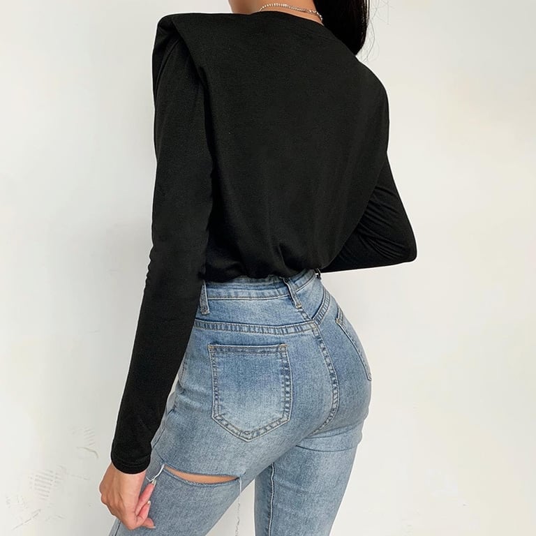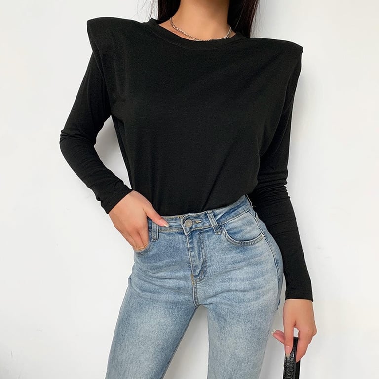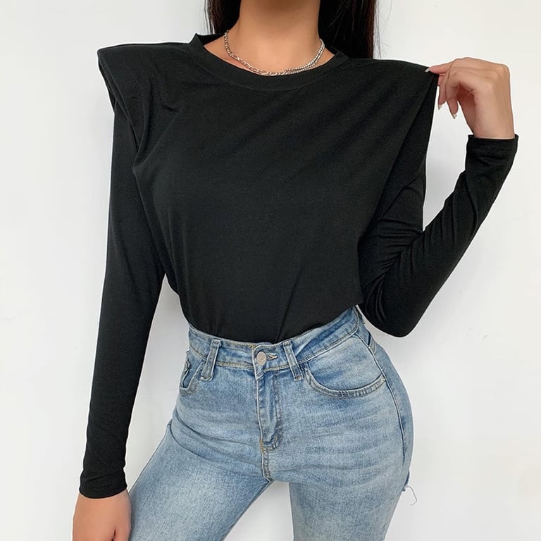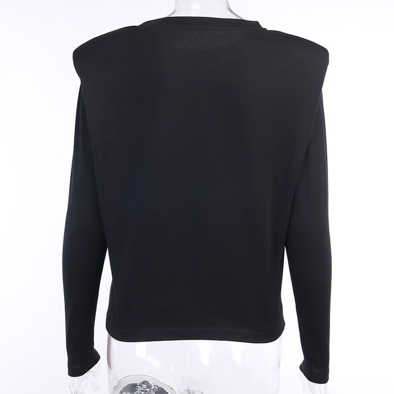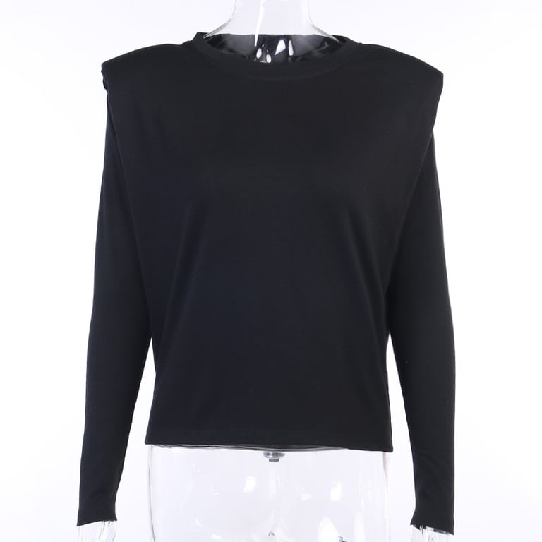 Women's t-shirt with shoulder pads and long sleeves in black, which combines beautifully and easily. The t-shirt is ideal for the autumn/winter season.
