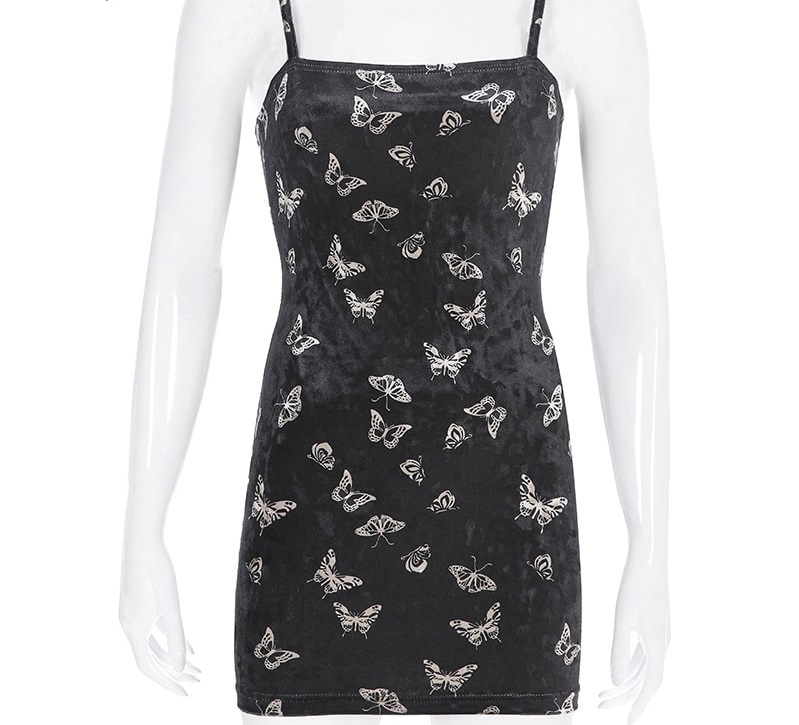 Women's Black Dress with Butterfly Print