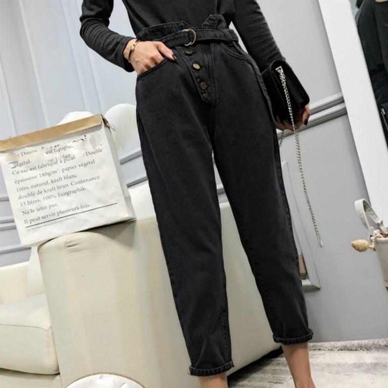 Women's black jeans with a belt