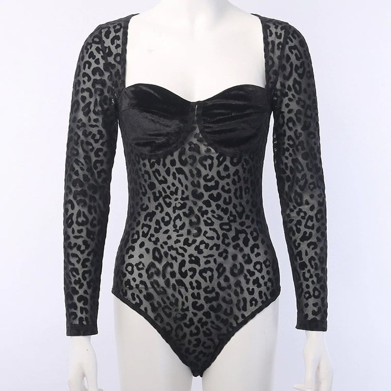 Women's black leopard bodysuit
