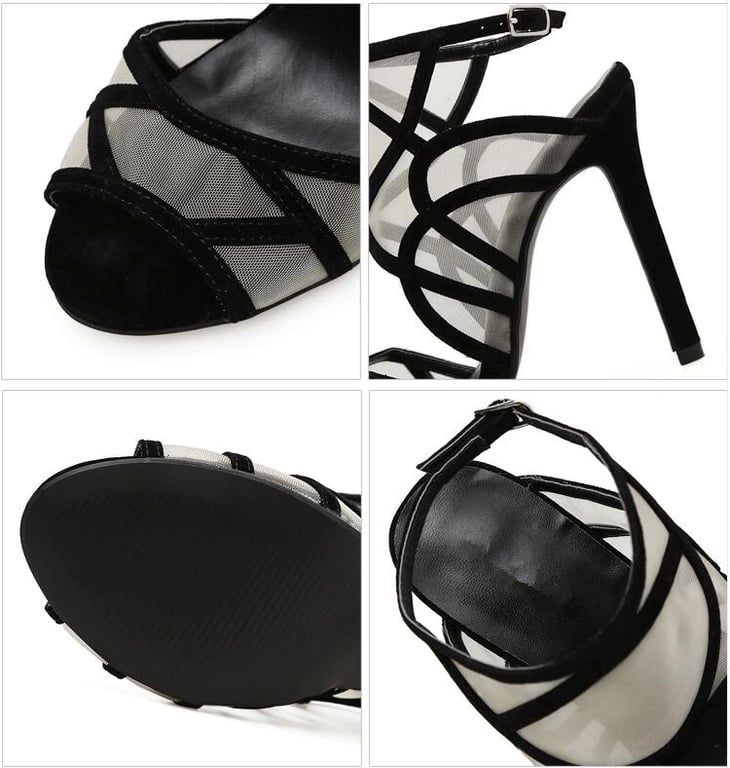 Every woman will love these women's black open-toe heels for their elegant appearance.