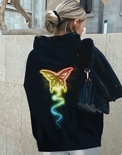• Tags: women's hoodie, black hoodie, hoodie with butterflies