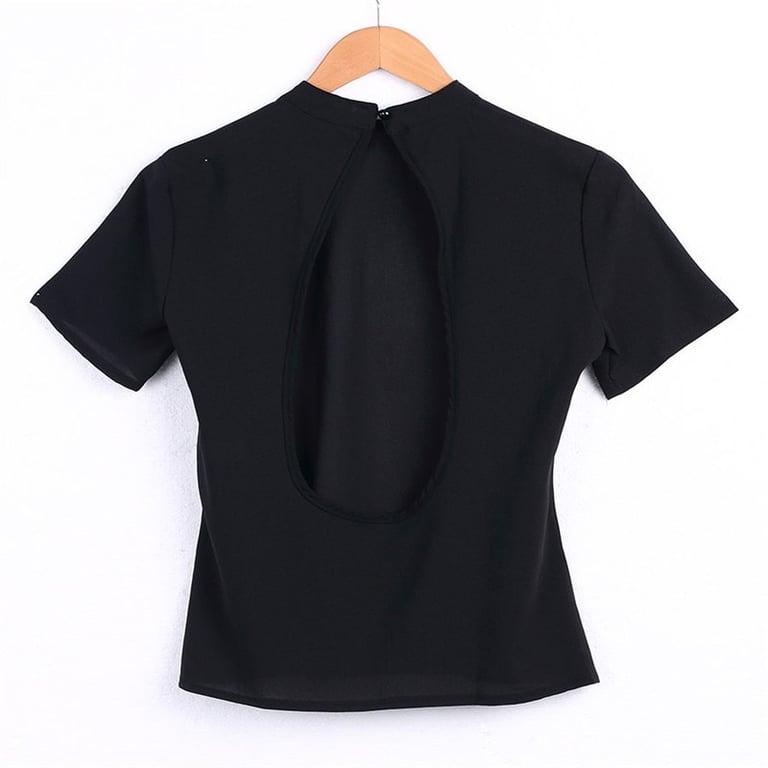 Women's Black T-Shirt with Exposed Back