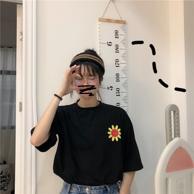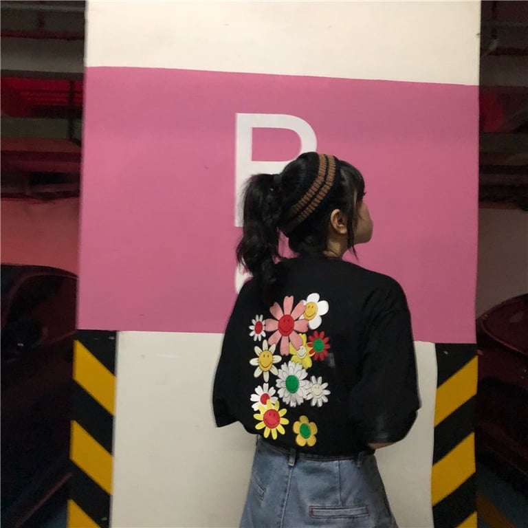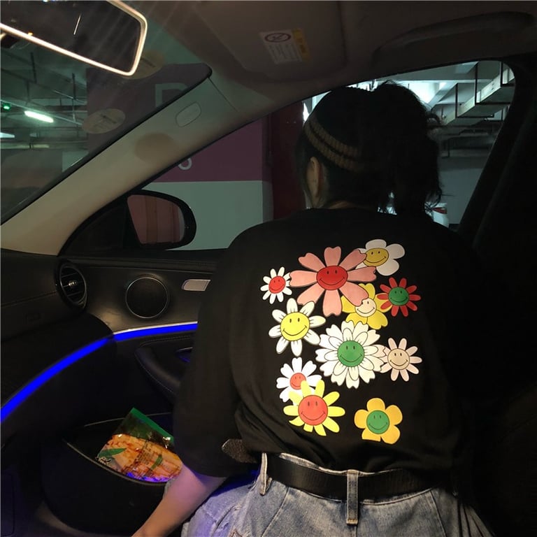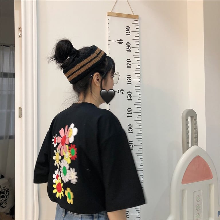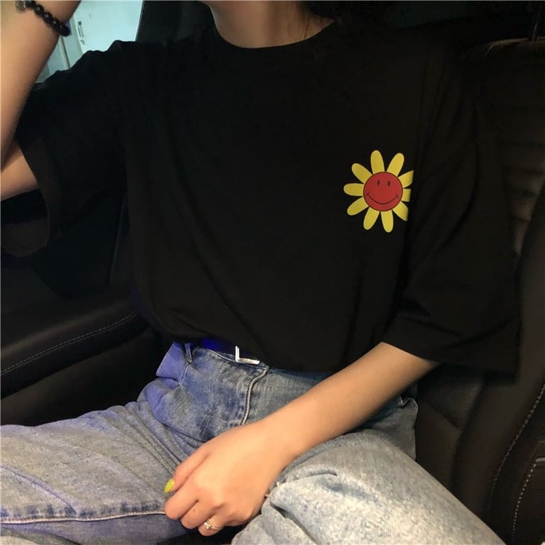 Women's Black T-Shirt with Floral Print