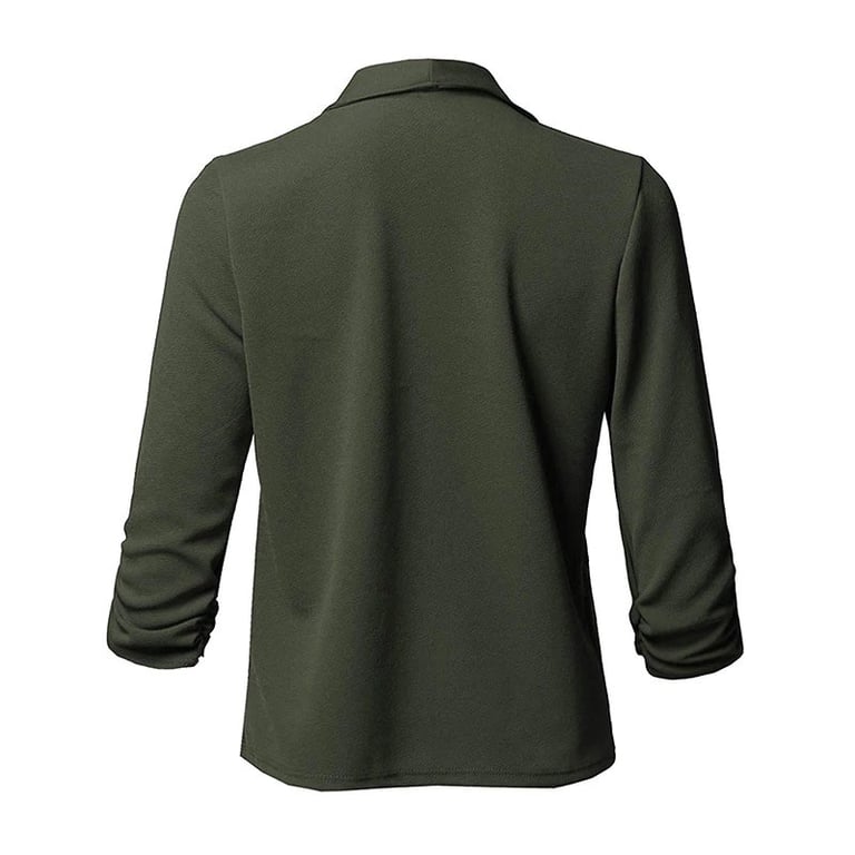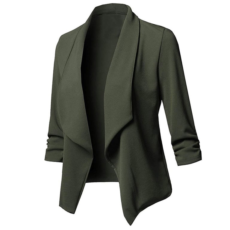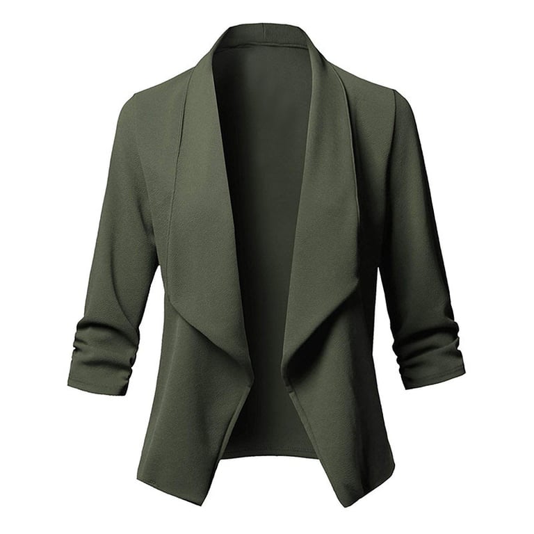 Women's blazer with 3/4 sleeves and wide lapels. The blazer is lightweight made from flowing fabric and has no fastening, unlined with a soft surface. Available in several colour options.