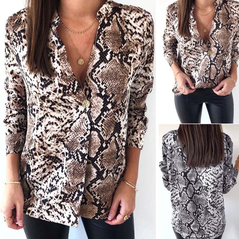 Stylish blouse with a snake pattern, which is a hit for this season! This piece definitely should not be missing from your wardrobe! You will look stylish in it, and a perfect appearance will also ensure a better mood.