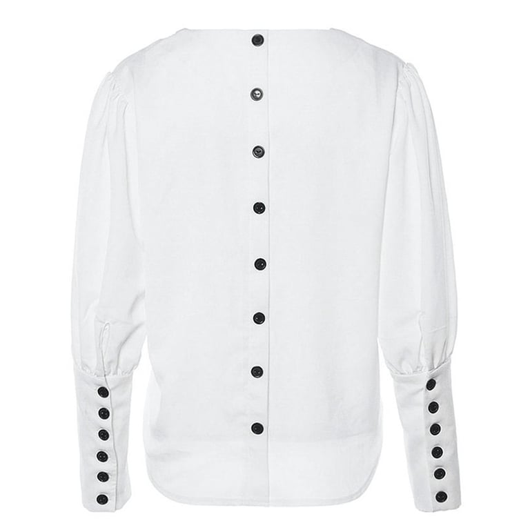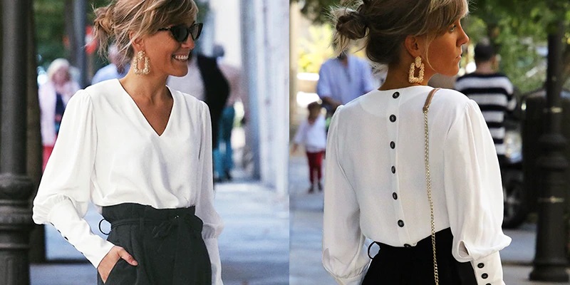 This white blouse with buttons on the back looks great!