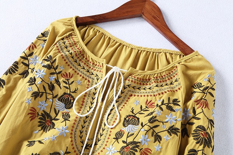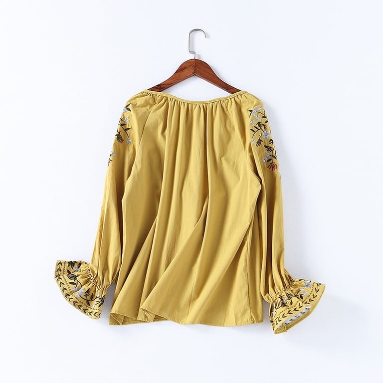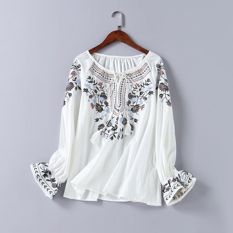 High-quality blouse with hand-stitched flowers. Long sleeves.