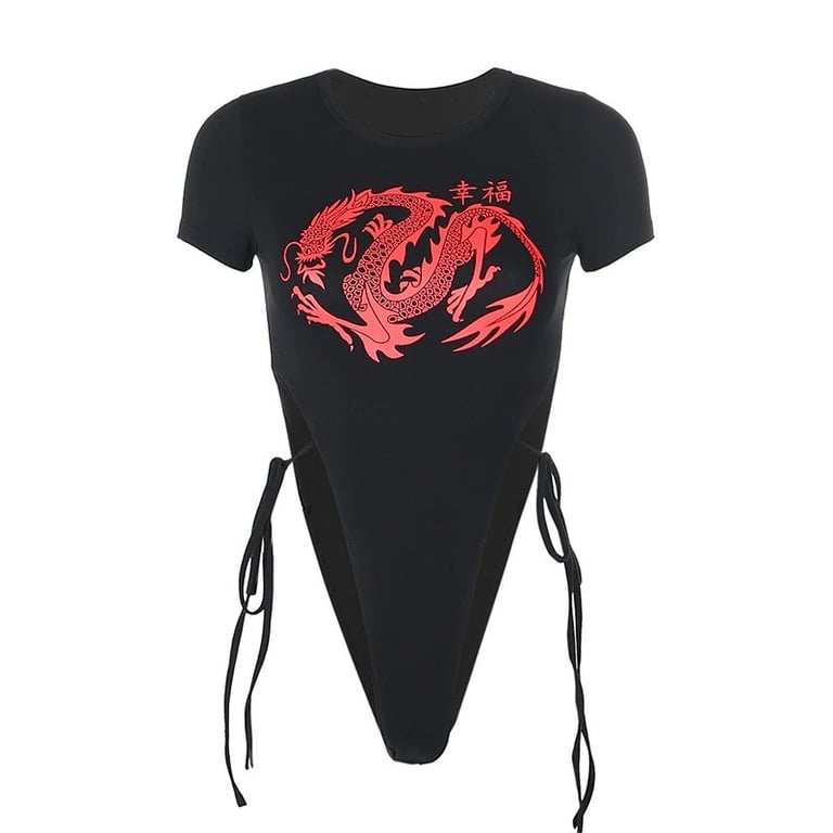 Women's bodysuit with dragon motif
