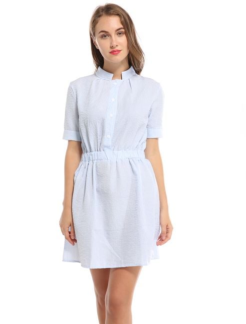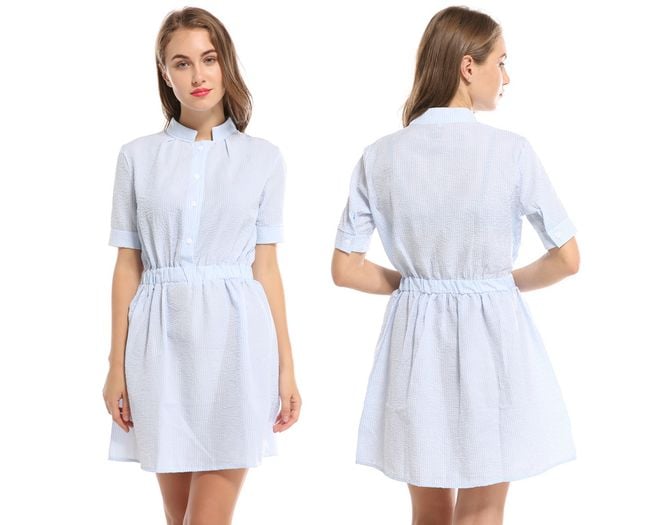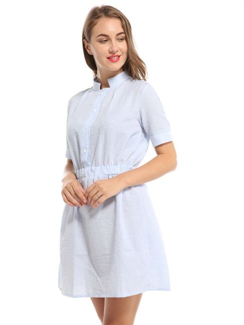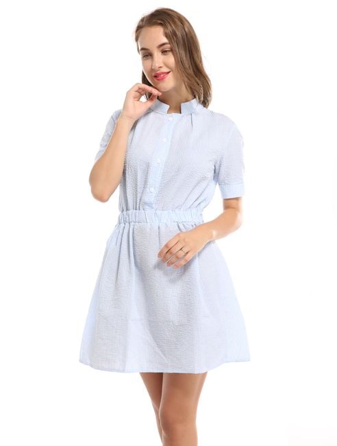 Women's breathable button-up dress is a suitable outfit for summer. The measurements provided are for the product, not the body.
