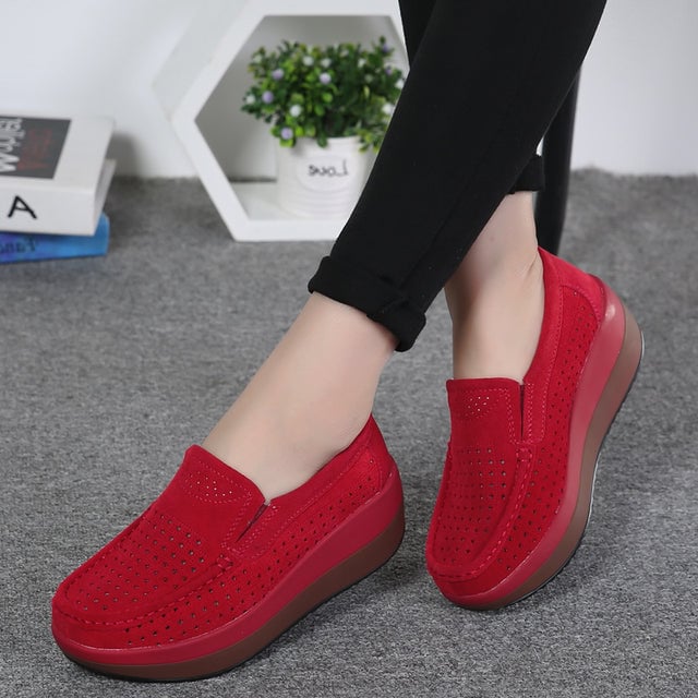 Women's spring breathable shoes on a high platform.