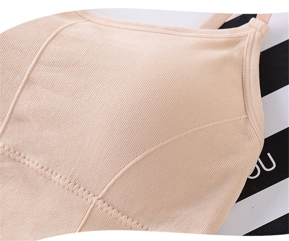 This simple yet beautiful sports bra will make your workouts enjoyable. You can choose from several colours and cup sizes. The bra features narrow straps.