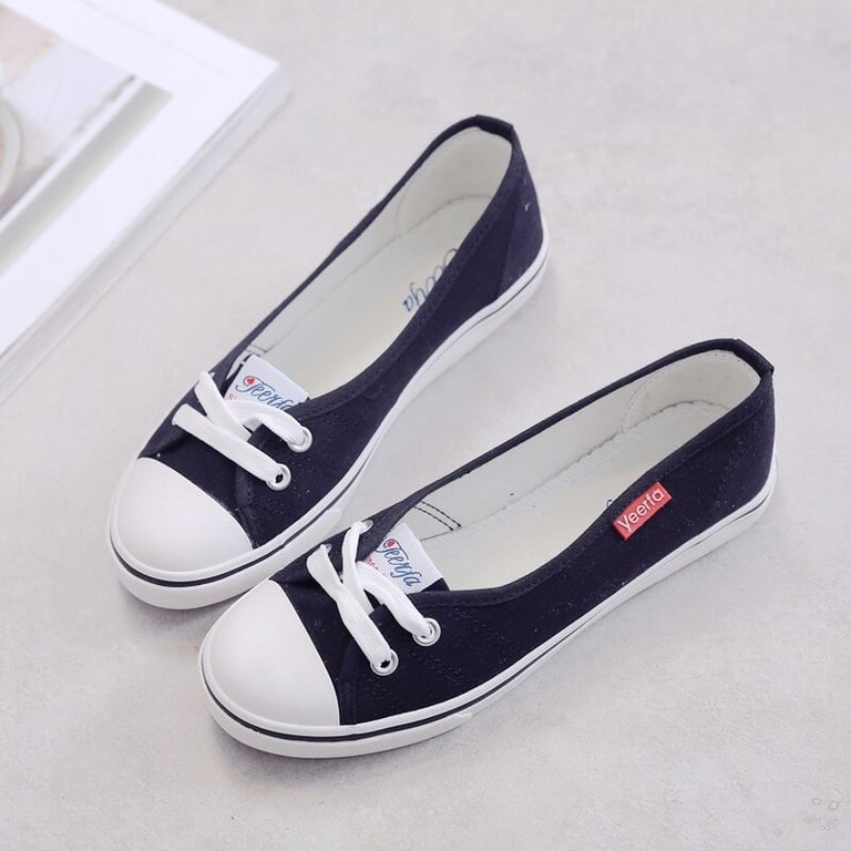 Women's canvas trainers with a round rubber toe and flat sole. Cut-out design with lace-up fastening. Available in multiple colour options.