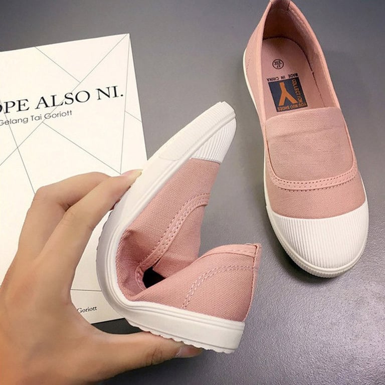 Women's slip-on canvas shoes. Reinforced rubber toe. Flexible rubber sole. Available in multiple colour options.