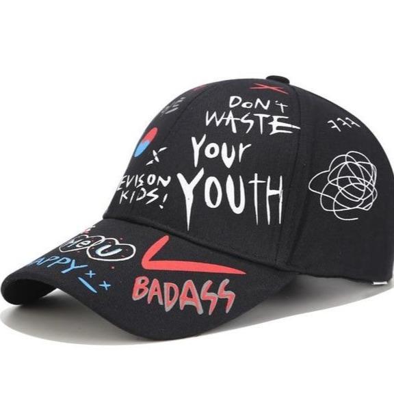 Stylish women's cap with inscriptions. Available in multiple colours.