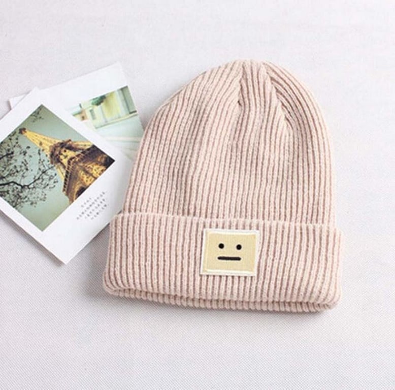 Cool women's hat with a smiley face patch on the front.